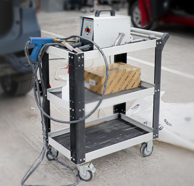 Las máquinas saca bollos, spotters o desabolladoras son herramientas utilizadas para reparar abolladuras en la lámina de un vehículo. Una ventaja clave de usar estas máquinas es que no es necesario desmontar las partes internas del vehículo, lo que ahorra mucho tiempo en el proceso de reparación. Por ejemplo, si hay una abolladura en el techo del vehículo, no será necesario quitar el tapizado interior para repararla.